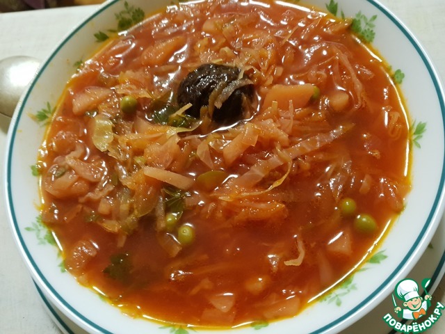 Рецепт «Борщ с черносливом и сырными ватрушками»: