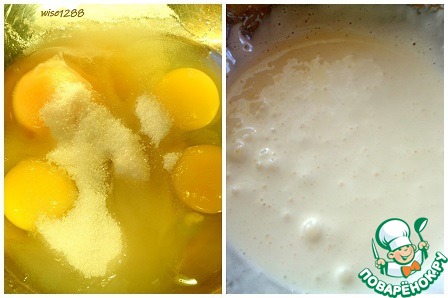 Приготовить бисквит: в яйца добавить сахар и взбивать не менее семи минут.