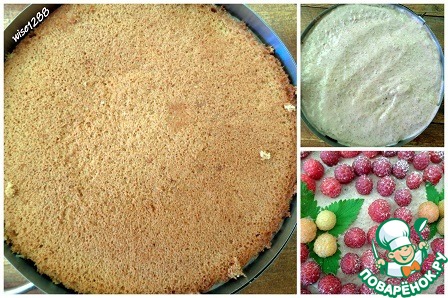 Рецепт «Бисквитный торт со сметанно–малиновым кремом»: