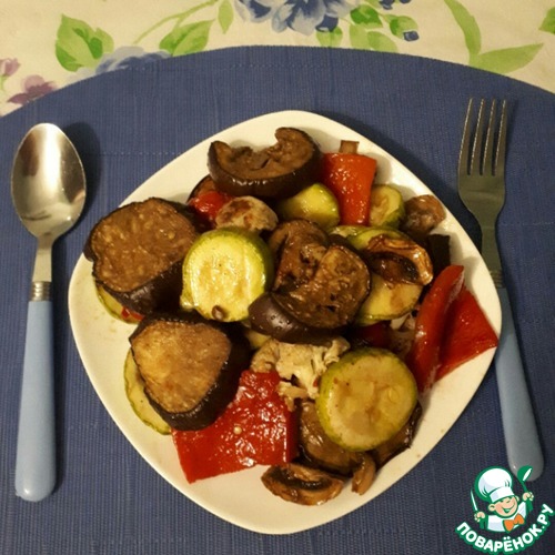 Очень люблю запеченные овощи. Такие овощи готовят у меня на работе в горячем цехе. Так зачем покупать, если можно приготовить самой. Решила и с вами, поварята, поделится этим рецептом. Овощи вкусны как в горячем, так и в холодном виде.