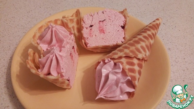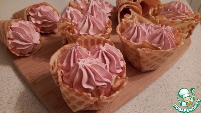Еще я попробовала заполнить вафельные корзиночки зефиром с добавлением ягодного пюре