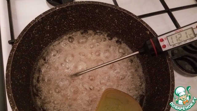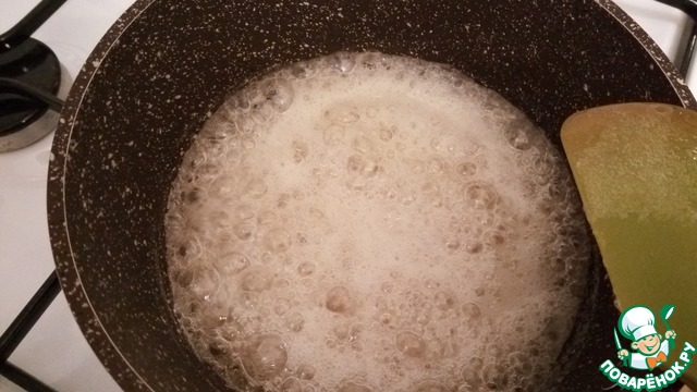 Даем массе закипеть, помешиваем лопаткой чтобы агар не подгорел