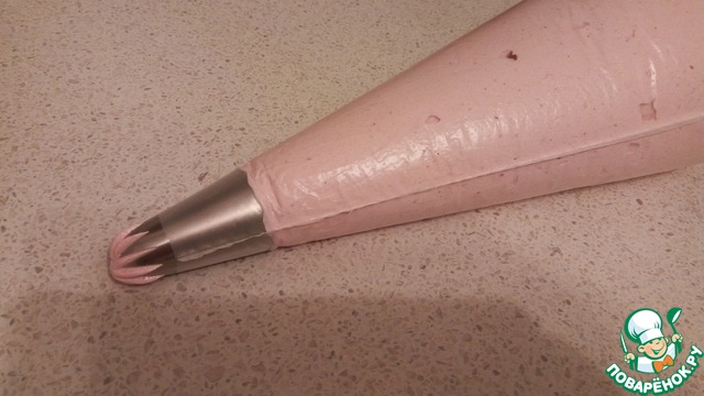 Затем готовую массу перекладываем в кондитерский мешок с насадкой и приступаем к формированию десерта