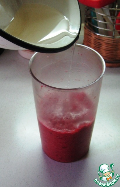 Влить сахарный сироп в фруктовое пюре. Тщательно перемешать. -