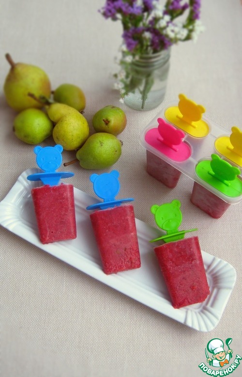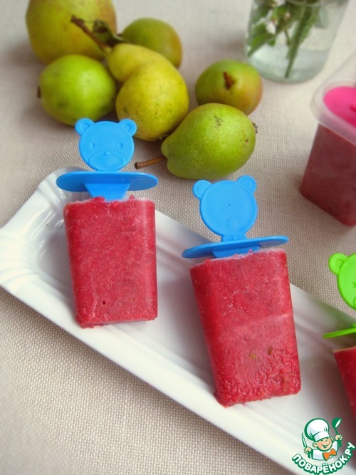 Освежающий в жаркий день фруктовый лед из сочной, сладкой груши и ярких вишен!