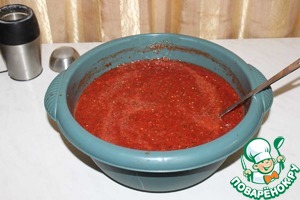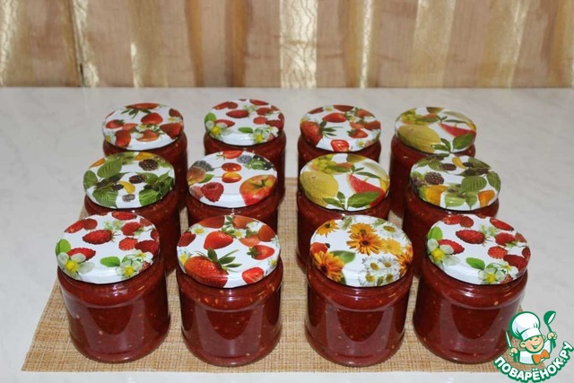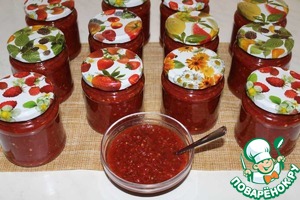 Разливаем аджику по стерилизованным баночкам.