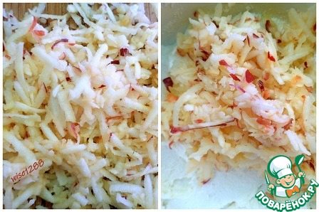 Яблоко нашинковать и добавить в творожную смесь.