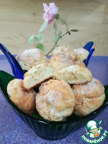 Домашнее печенье с приятным творожным вкусом. Благодаря сахарной обсыпки оно имеет тонкую хрустящую корочку, остается мягеньким внутри, а вкрапления яблока с корицей придают великолепный аромат.