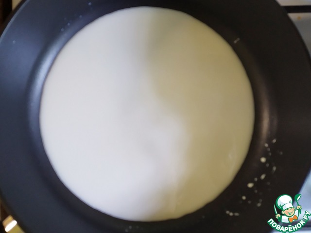 В сковороду налить сливки, добавить цедру. Варить 3-4 минуты, часто помешивая.