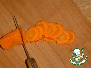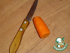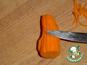 • 1. Чистим морковь и делаем заготовку с равномерными бороздками
