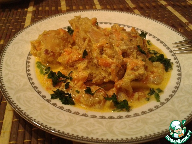 Кролик в нежном соусе из морковки. очень вкусно. не знаешь что выбрать или мяско или просто соус вымакивать.