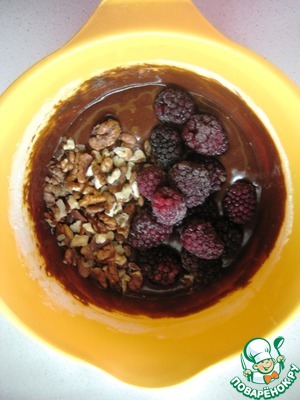 Добавить грецкие орехи и замороженную ежевику. Аккуратно перемешать.