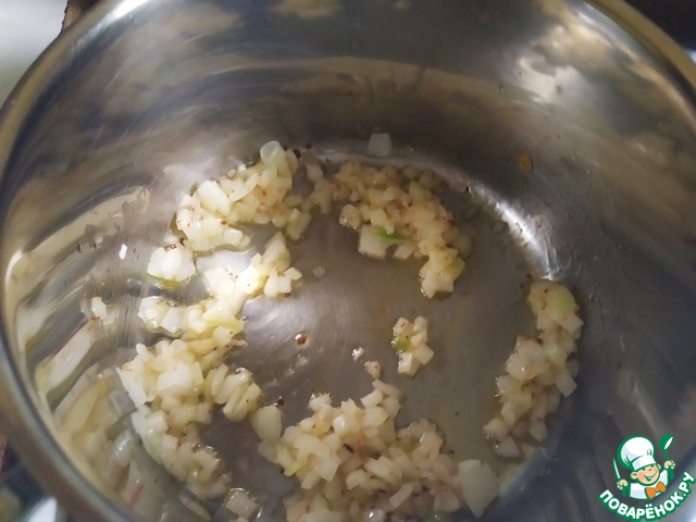 В большую кастрюлю наливаем оливковое масло и обжариваем лук.
