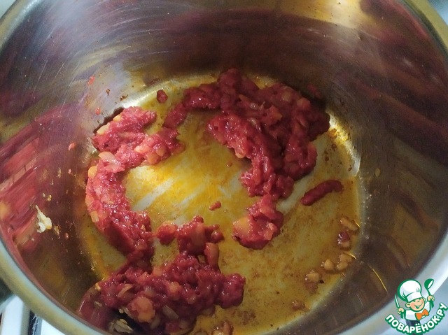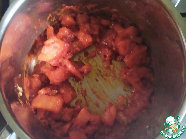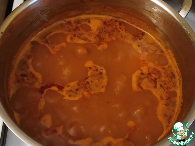 Так же пробуем на соль и чили - по необходимости добавляем. Томатную пасту и паприку - так же можно добавить по вкусу.