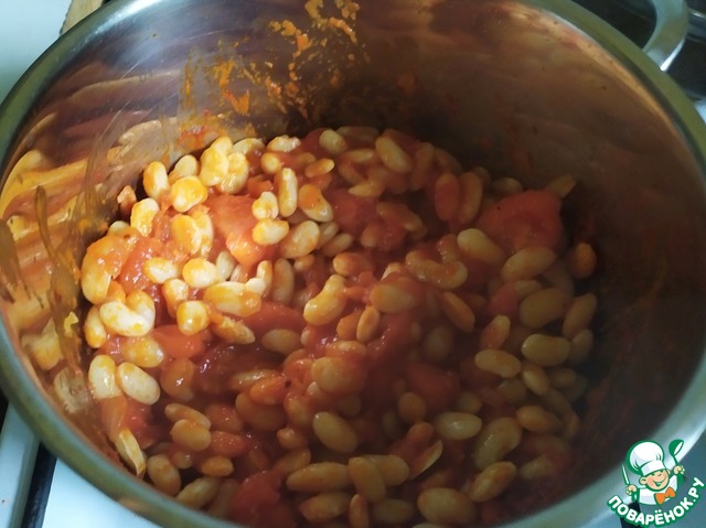 И еще по количеству воды. Важно, что мы не суп готовим, а фасоль в соусе. Именно на это, к концу готовки, и ориентируйтесь. -
