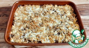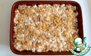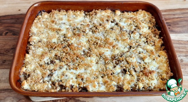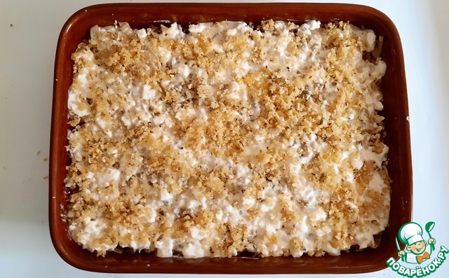 Посыпаем хлебно-ореховой крошкой и отправляем в разогретую духовку до 200 градусов на полчаса. Наблюдайте за процессом, у всех духовки разные