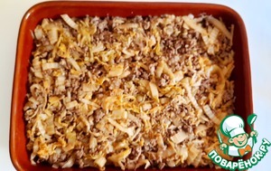 На картофель выкладываем капусту с фаршем, разравниваем.