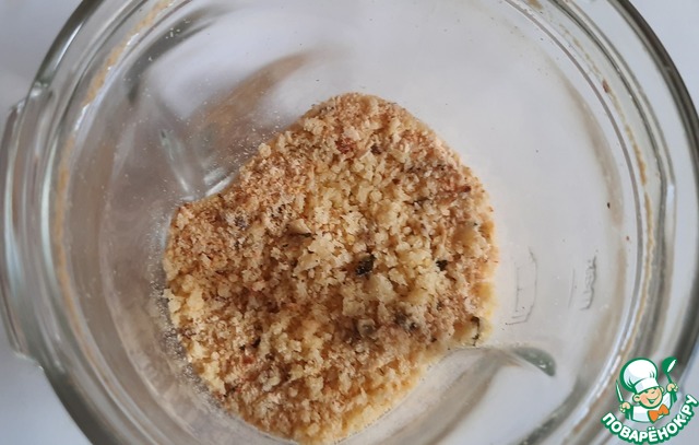 Растапливаем две столовые ложки сливочного масла, смешиваем с хлебной крошкой.