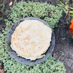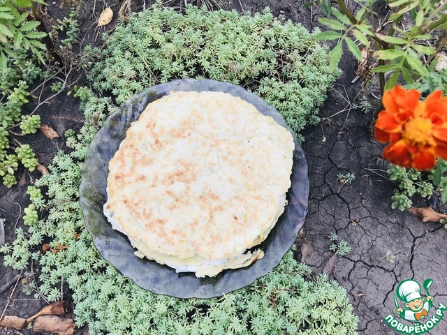 Выложить тесто ложкой на сковороду по всей поверхности дна. Жарить блинчики по 3 минуты с каждой стороны. У меня получилось 5 блинчиков.