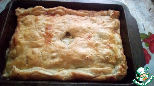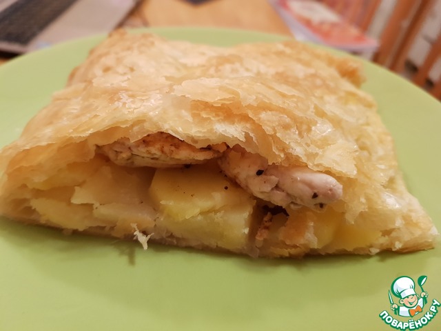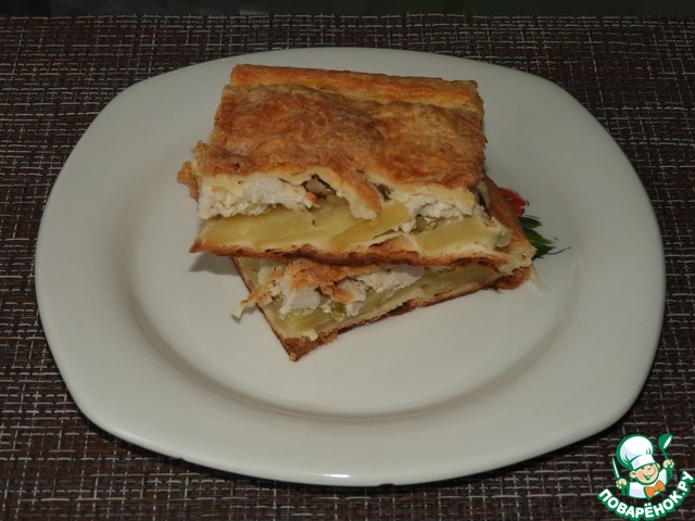 Пирог из слоеного теста с мясом курицы и картофелем. За фото спасибо поваренку yuvl.