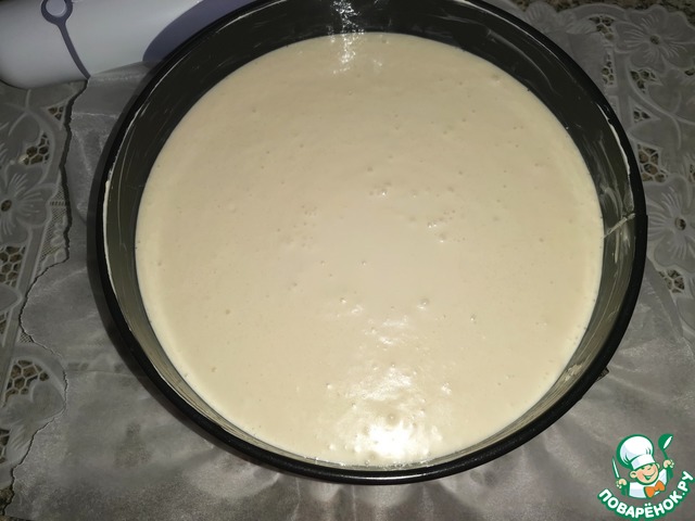 Выложить массу в смазанную маслом разъёмную форму d=20-22см. Дно формы застелить бумагой для выпечки.