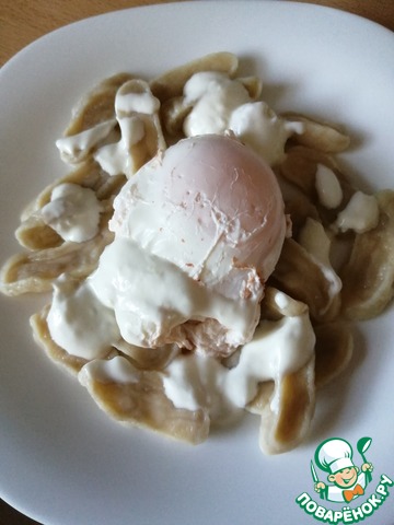 Рецепт «Галушки с яйцом под чесночным соусом»:
