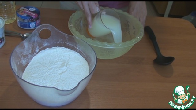 Постепенно добавляем просеянную муку, на муку высыпем дрожжи. Я использовала сухие дрожжи, если у вас пресованные, то сначала нужно сделать опару, для этого смешать дрожжи, жидкость, сахар и несколько ложек муки из общей массы, размешать и дать постоять 10-15 минут, чтобы образовалась шапочка и потом добавлять муку и соль. Муку добавляем постепенно, замешиваем тесто.