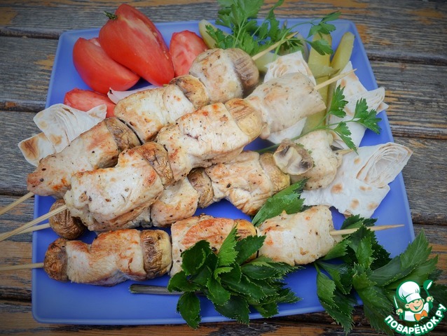 Шашлычки из индейки и шампиньонов