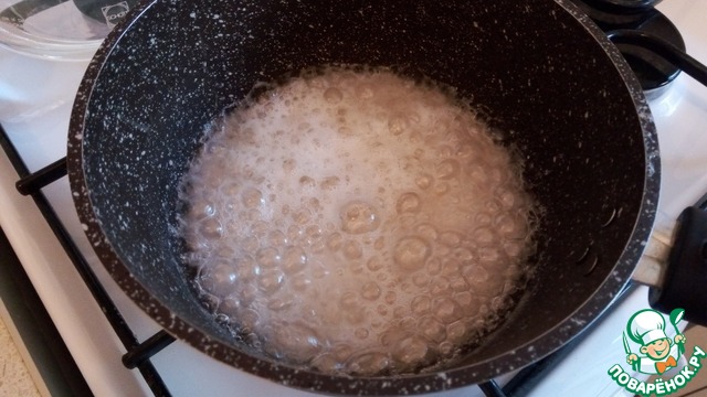 Когда карамель закипит она увеличится в объеме, для этого нам нужен сотейник с высокими бортами
