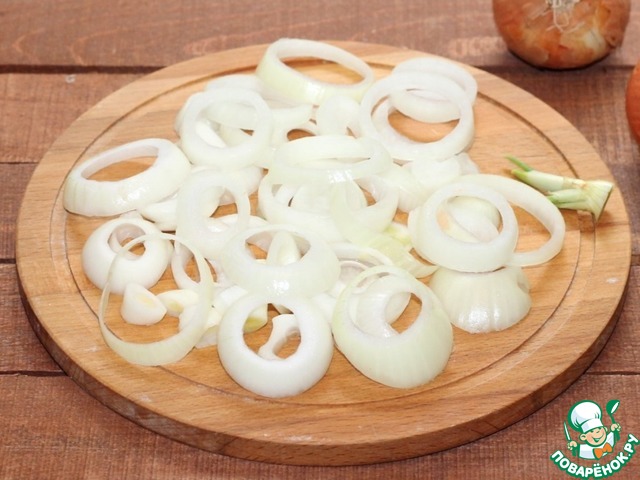 3. Очищаем и нарезаем кольцами репчатый лук.
