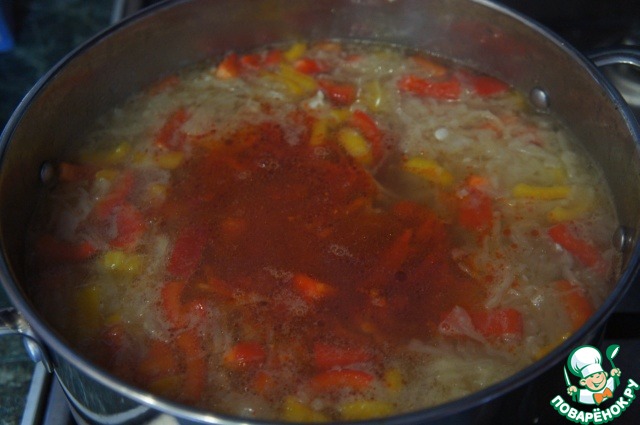 • Добавить томат-пасту и тушить еще пару минут.