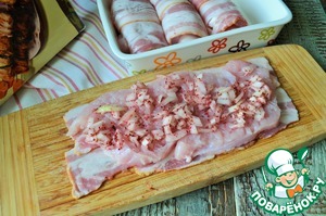 - Бекон (сырокопчёный, 8 слайсов) — 200 г