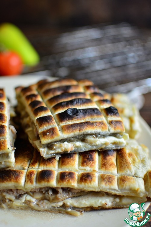 Рецепт «Пирог на гриле с индейкой и грибами»: