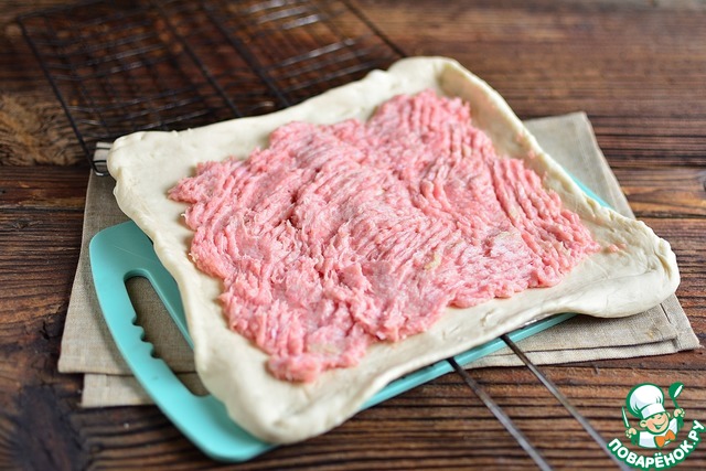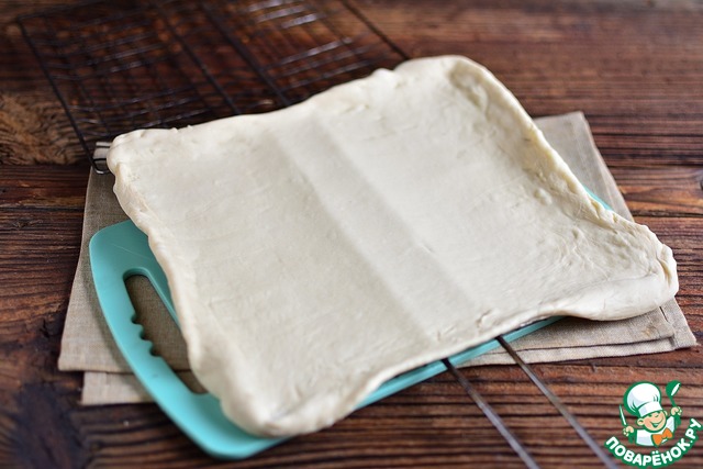 - Тесто слоеное дрожжевое (2 прямоугольных пласта) — 500 г