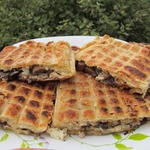 Супер быстрый, ароматный пирог на углях! Быстрее только он съедается) На пикник берите с собой больше салфеток, очень сочная начинка из индейки, шампиньонов и сыра, стекается по пальцам) Хрустящая корочка, красиво выглядит на столе из-за "выпученных пупырышек"