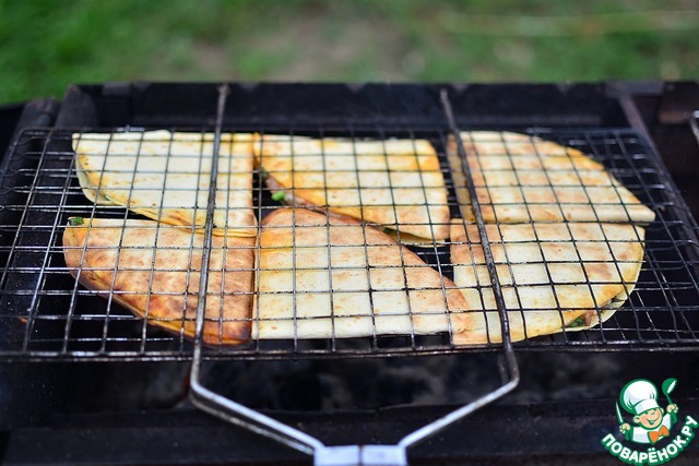 Рецепт «Треугольнички гриль с индейкой и шпинатом»: