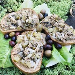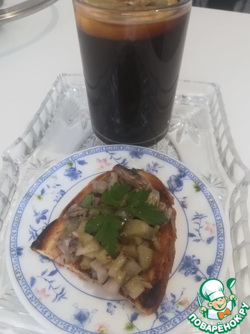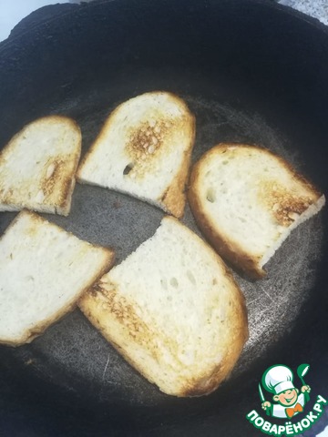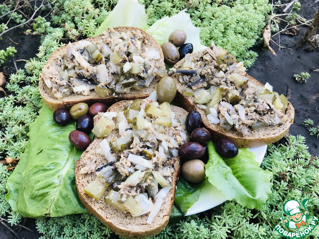 Начинку выкладываем на ломтики хлеба, украшаем зеленью.