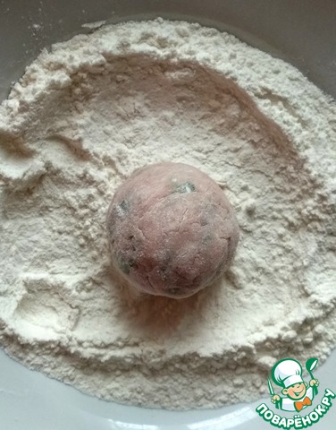 Фарш переложить в миску, добавить 1 ст. л. муки. Перемешать.