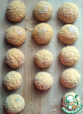 Обжаривать шарики в кипящем масле до зарумянивания, примерно 6-8 мин. С помощью шумовки вынуть шарики на тарелку, застеленную салфетками, чтобы впиталось лишнее масло.