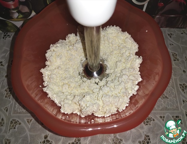 Разбухшие хлопья добавить к моркови и перемешать. Затем соединить с творожной массой и взбить блендером.