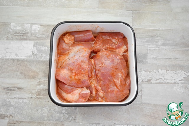- Индейка (3 стейка бедра по 200 г каждый) — 600 г