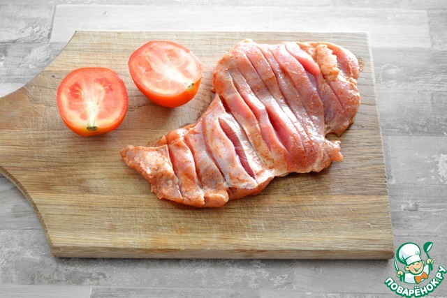 Для стейков возьмите филе бедра ТМ Индилайт. Подровняйте его, чтобы стейки были ровными.