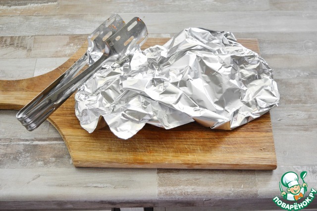 Снимите с гриля, накройте фольгой и оставьте стейк на 5 минут отдохнуть