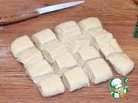 13. Формируем пирожки при помощи вот таких предметов - это круглая ручка от вилки и острый ножик. Когда формируете, т. е. разрезаете очередной лепесток, ручка ножа, направлена в середину, тогда получается круглый лепесток. Разрез небольшой. Кончик вилки, каждый раз макаете в муку.