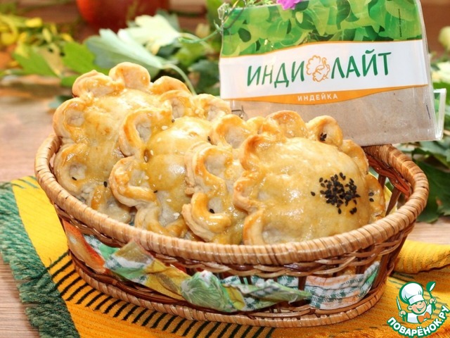 Нежное тесто, ароматные специи и аппетитная начинка из индейки и овощей, прекрасно дополнит ваш пикниковый стол. Легкое и низкокалорийное мясо индейки быстро усваивается, что делает его идеальным вариантом для застолий!