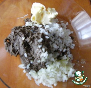 Лук режем очень мелко,масло должно быть мягким.