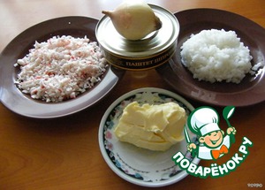 Отваренный рис смешиать со шпротным паштетом,добавить размягченное сливочное масло,мелко нарезанный лук.