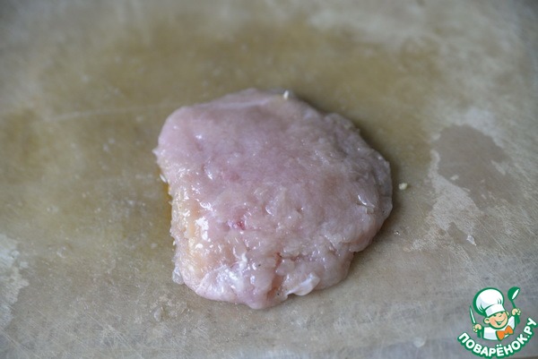 Из грудки индейки вырезаем пласты (стейки), размером, грубо 10 на 15 см, и отбиваем, лучше через плёнку.