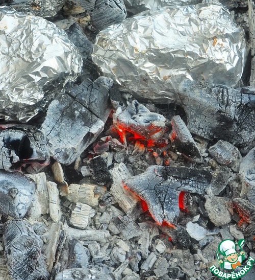 • Запекать на хорошо разогретых крупных углях, по 10 - 15 минут со всех сторон, от 45 до 65 минут.