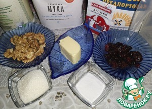 Муку просеять. Грецкие орехи порубить. -